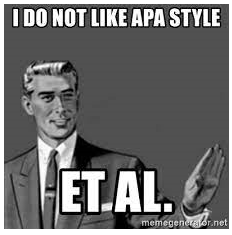 Another transition in paper formatting is the 6th edition online mindset. While moving from MLA to APA, many first year students are still finding a lot of material on 6th edition still out there where many websites have not made the update to 7th edition APA. This causes confusion for new undergraduate students since they are unsure which elements to include in there papers! Running Head on cover pages and Retrieved from being the old remnants of 6th edition no longer used in 7th edition. Another element is using all authors in their intext citations rather than putting et al. on their first citation without needing a signal phrase. In this webpage I will go over some of the MLA no no’s and elements needed for a complete APA paper.